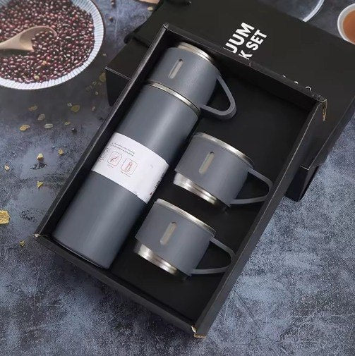 Description:"Flux Set" is a universal set for those who like to experiment with colors and styles. The set includes 4 thermoses (black, pink, blue and gray) and two thermo mugs for each thermos, which are suitable for any situation: from morning coffee to evening tea. Vacuum insulation ensures that the drink remains warm for 6 to 12 hours, and a variety of colors allow you to choose a set that will perfectly fit into your interior or become an original gift. Lightness and practicality make this set an indispensable companion in everyday life, traveling or at work.Includes: